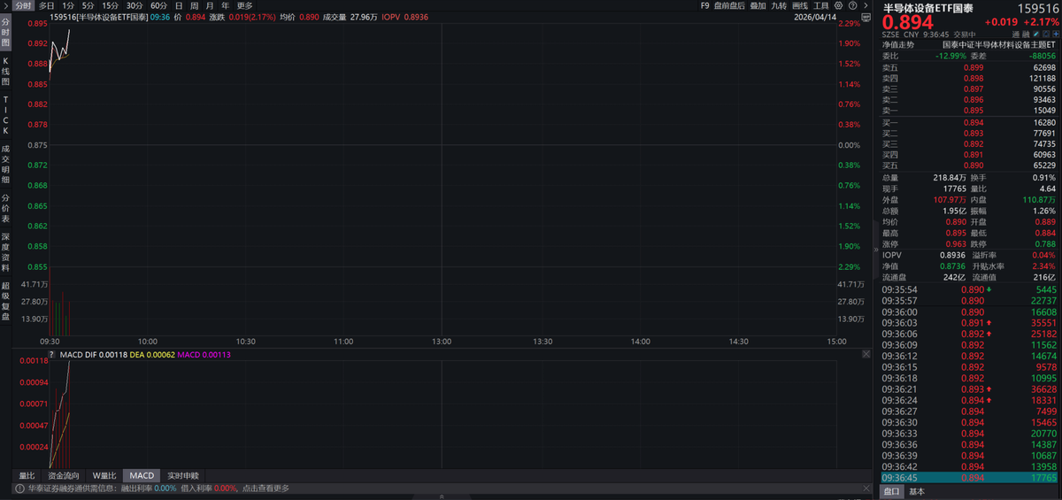 半导体开拓ETF(159516)大涨2%,动作粉饰刻蚀、薄膜千里积、清洗、测试等关键秩序的一篮子器用,有望在本轮景气周期中系统性受益。